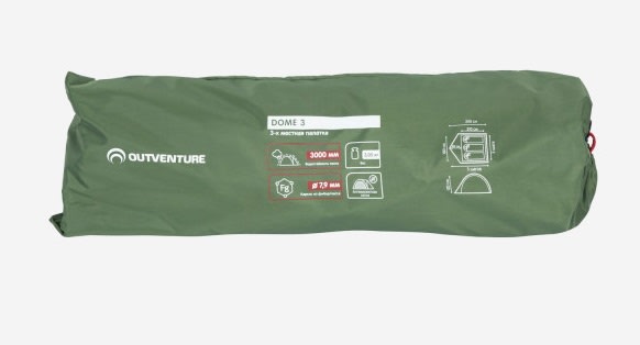 Палатка Outventure Dome 3, 3х местная, темно-зеленая