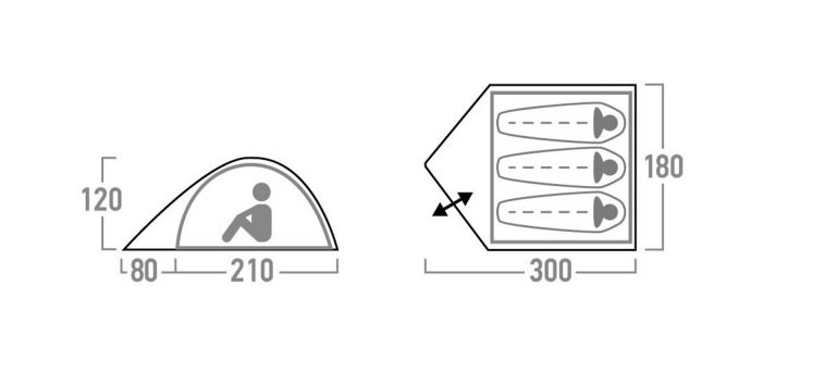 - Размер палатки (дл х шир х выс) - 300 х 180 x 120 см