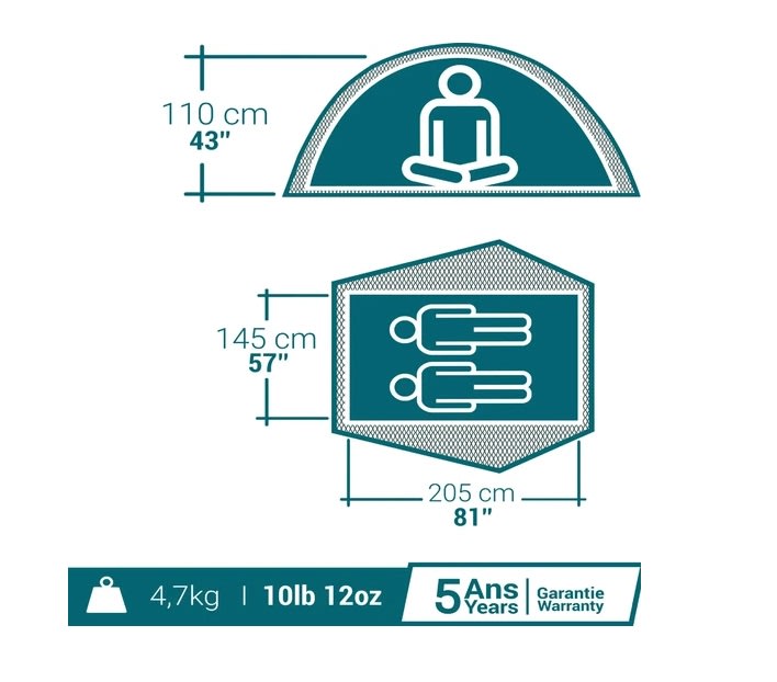 Водонепроницаемость (по Шмерберу): Тент > 2000 мм. Коврик > 5000 мм. Запатентованный наружный материал Fresh & Black: 99% темноты даже днем. Легкость транспортировки Размеры чехла: 59 x 20 x 20 см / 18,5 л. Вес: 4,7 кг. Предотвращение нагревания Тент, механическая вентиляция, материал Fresh&Black для хорошего сна. Легкость сборки / разборки Самонесущая конструкция. Установка и складывание по экскл. запат. технол. EASY. Эко-концепция Для 50% веса этого изд. предус. экол. диз. благ. небел. ткани и тех. dope dyed Устойчивость против ветра Ветроустойчивость – 50 км/ч (сила 6): проверена в аэродинамической трубе. Вместимость Комната: 145 x 205 см. Макс. полезная высота: 110 см. 2 зоны хранения обуви