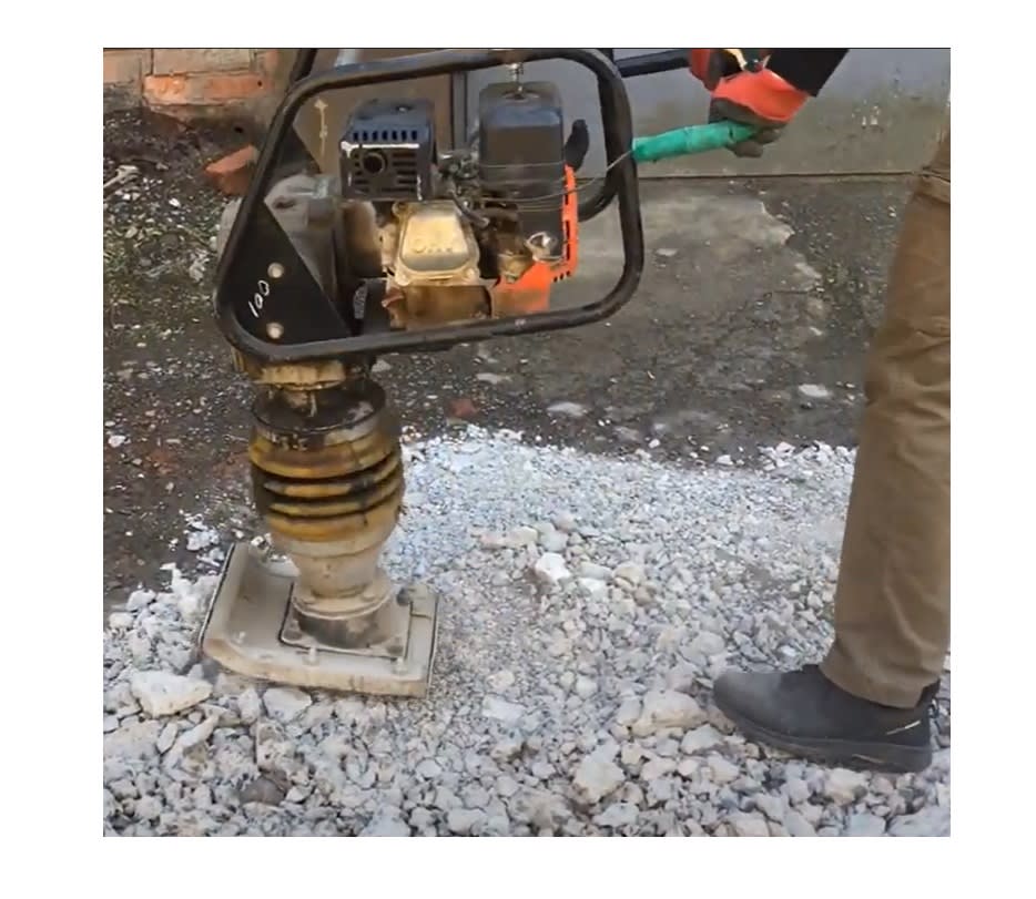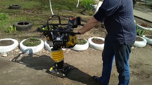 - Усиленная пружина установленная в двигающейся вверх и вниз части создаёт эффективное усиление уплотнения у основания трамбовки