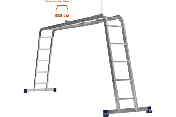 - Специальные горизонтальные подпорки с нескользящими вставками обеспечивают хорошую устойчивость лестницы, что делает работу с ней безопаснее.